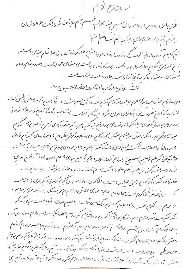 نسخه کامل وصیت‌نامه شهید جعفر سجده‌ای برای نخستین‌بار منتشر شد
