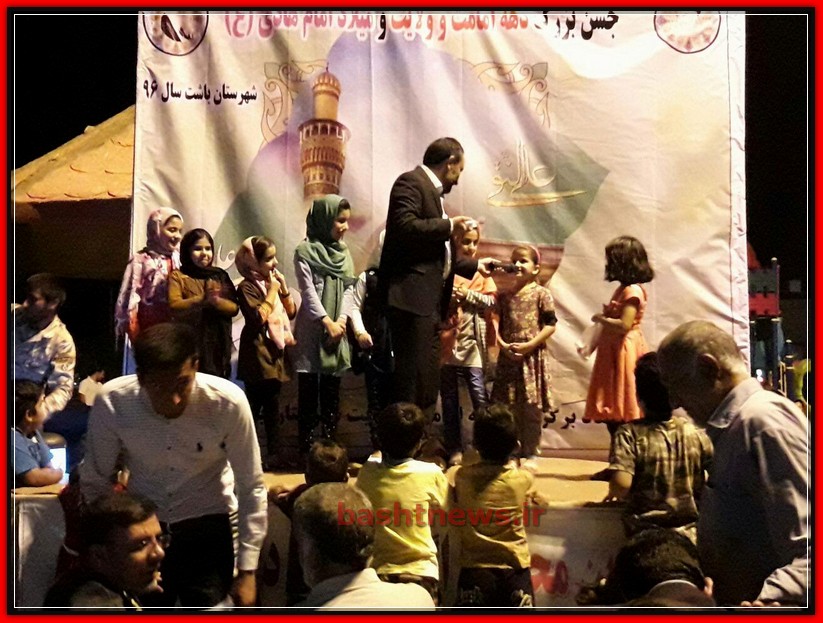 در این جشن بزرگ برنامه های متنوع و شاد به همت سپاه ناحیه باشت,اداره تبلیغات اسلامی و اداره ارشاد برای شهروندان اجرا شد.سخنرانی،مولودی ،پذیرایی و مسابقات شاد و اهدای جوایز از جمله برنامه های این جشن بزرگ بود.
